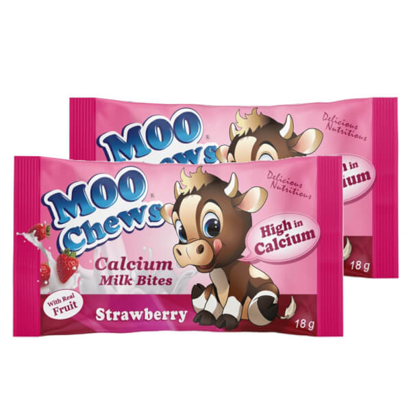 Viên sữa Moo Chews Strawberry nổi bật ở ưu điểm bổ sung đến 25% hàm lượng canxi hàng ngày. Nhờ đó, sản phẩm có công dụng giúp xương bé chắc khỏe và làm tăng chiều cao hiệu quả. Đặc biệt, viên sữa còn sở hữu vị dâu tây ngọt ngào giúp bé dễ ăn hơn