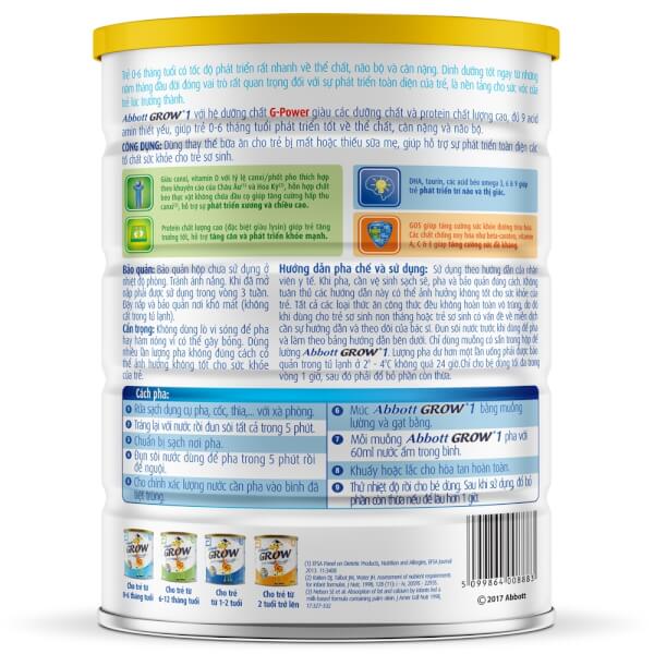 | Tên sản phẩm | Sữa Abbott Grow 1 900g (0-6 tháng) |